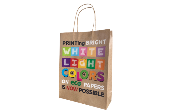 We can now achieve vibrant whites & light colours on a 100% eco, recyclable paper bag