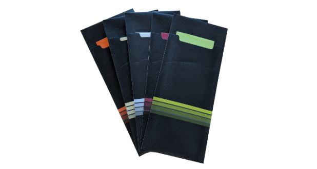 An extensive range of colours and designs, optional ‘envelope’ flap on some. Supplied with 2 ply quality napkin; pre loaded mechanically for maximum hygiene and efficiency.
